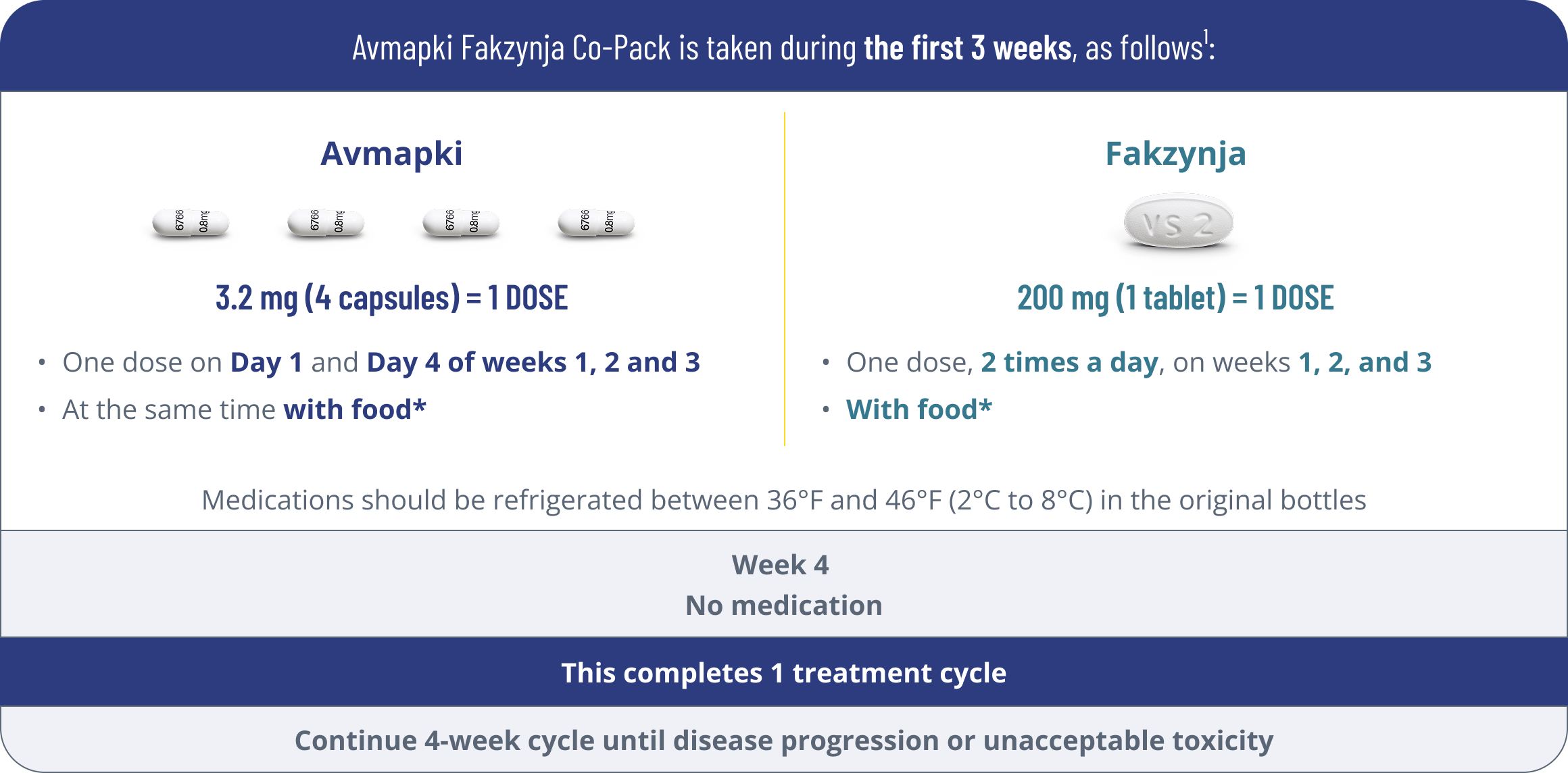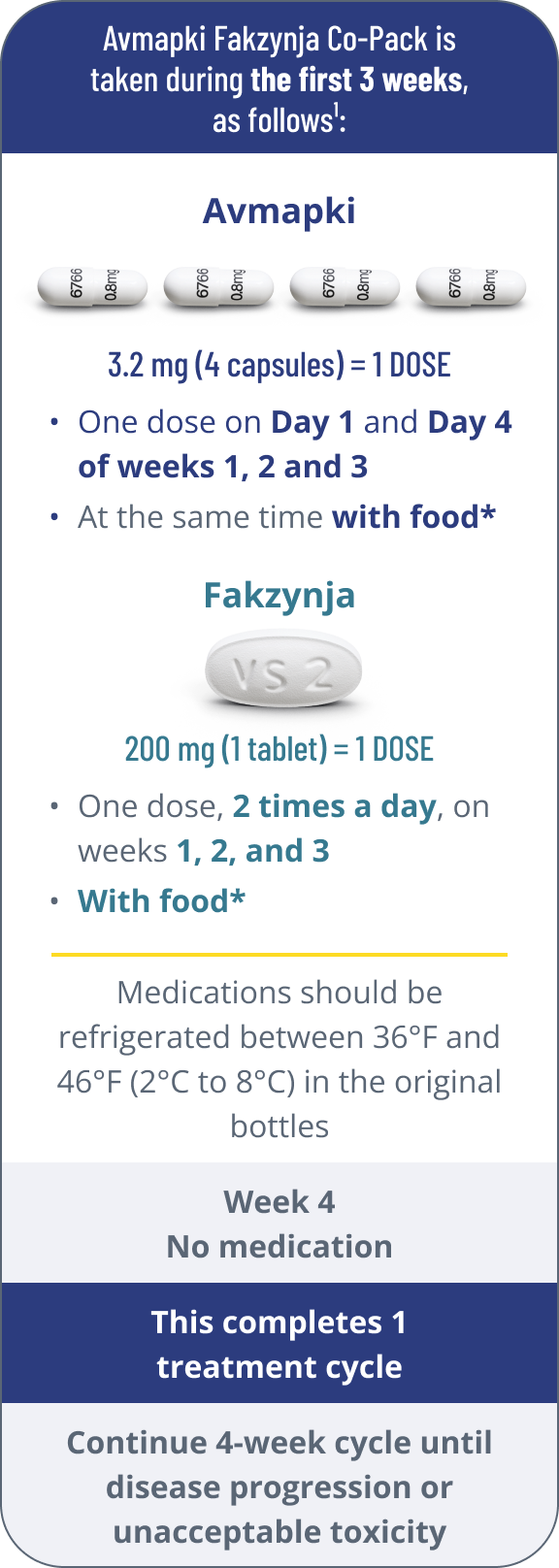Avmapki Fakzynja Co-Pack dosing schedule is based on a 4-week cycle1